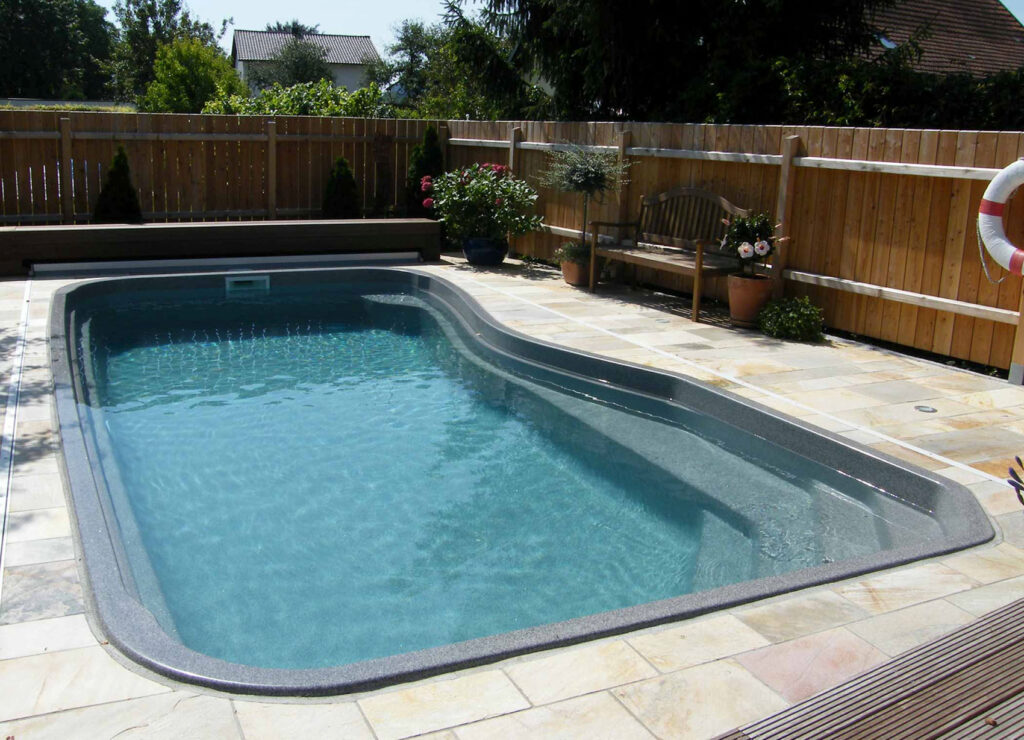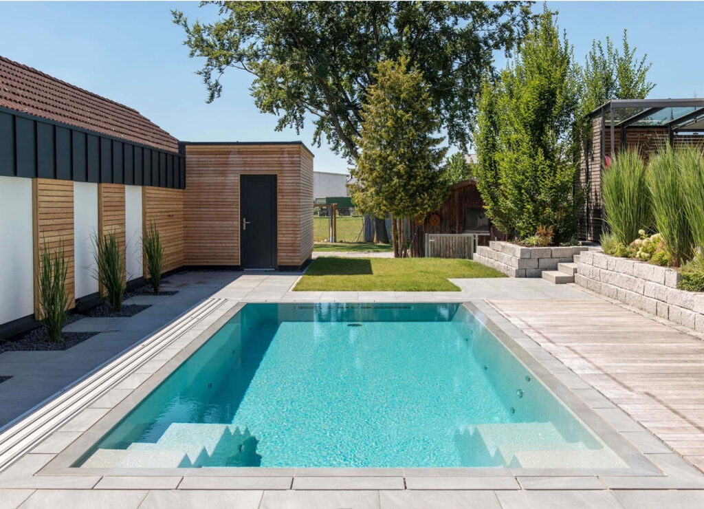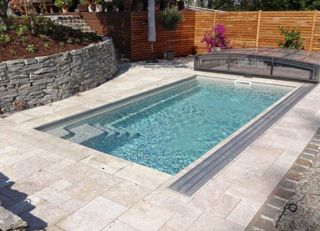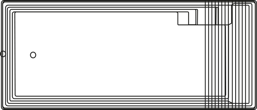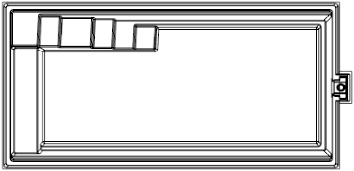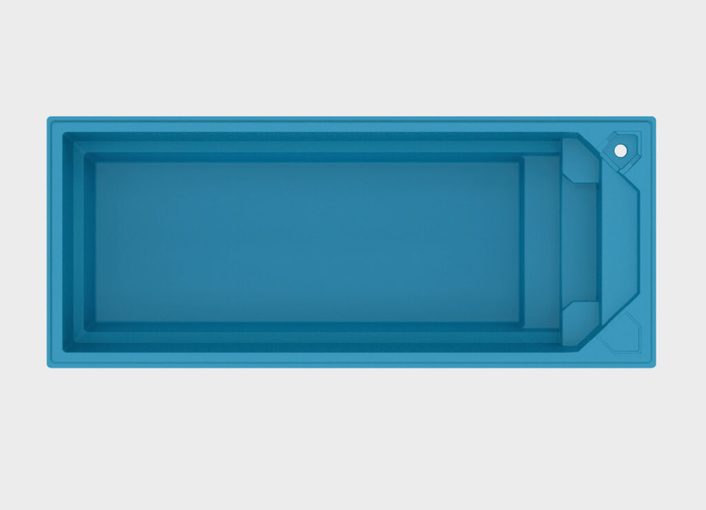 En av våra prisvärda pooler med trappa i ena hörnet. En minimalistisk design som lämpar sig väl till de flesta miljöer och har en fantastiskt stilrent design
