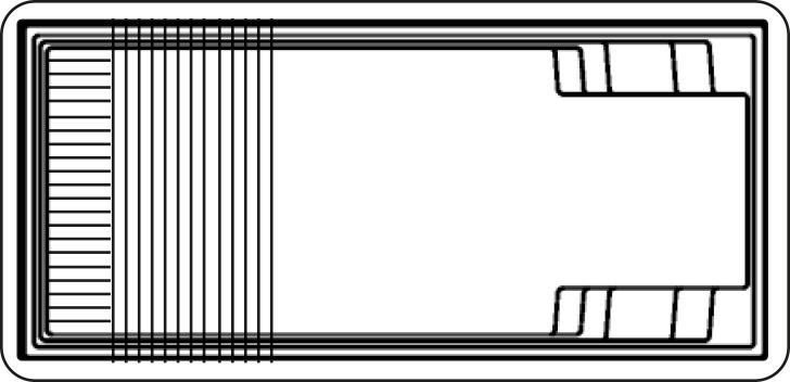 Fun har två trappor på sidorna och gott om plats för att simma i mitten. Generöst med utrymme för att sitta och för smidig poolaccess. Långsidorna har fotsteg och handtag längs hela vägen för ökad säkerhet och bekvämlighet.